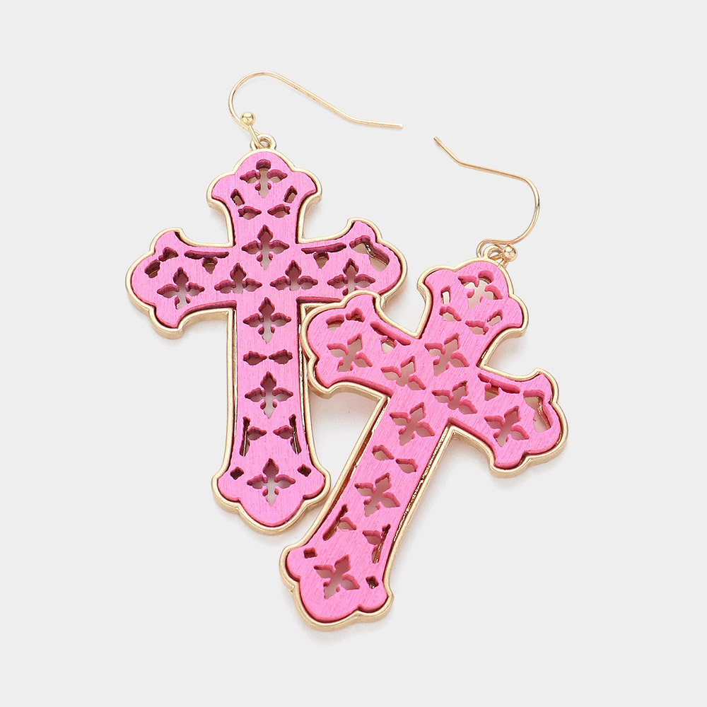 • These statement drop earrings feature a bold cross shape with intricate cutout detailing and a sleek outline for added contrast. Designed to stand out, they offer a striking blend of faith-inspired symbolism and contemporary style. Lightweight and perfect for bold accessorizing.