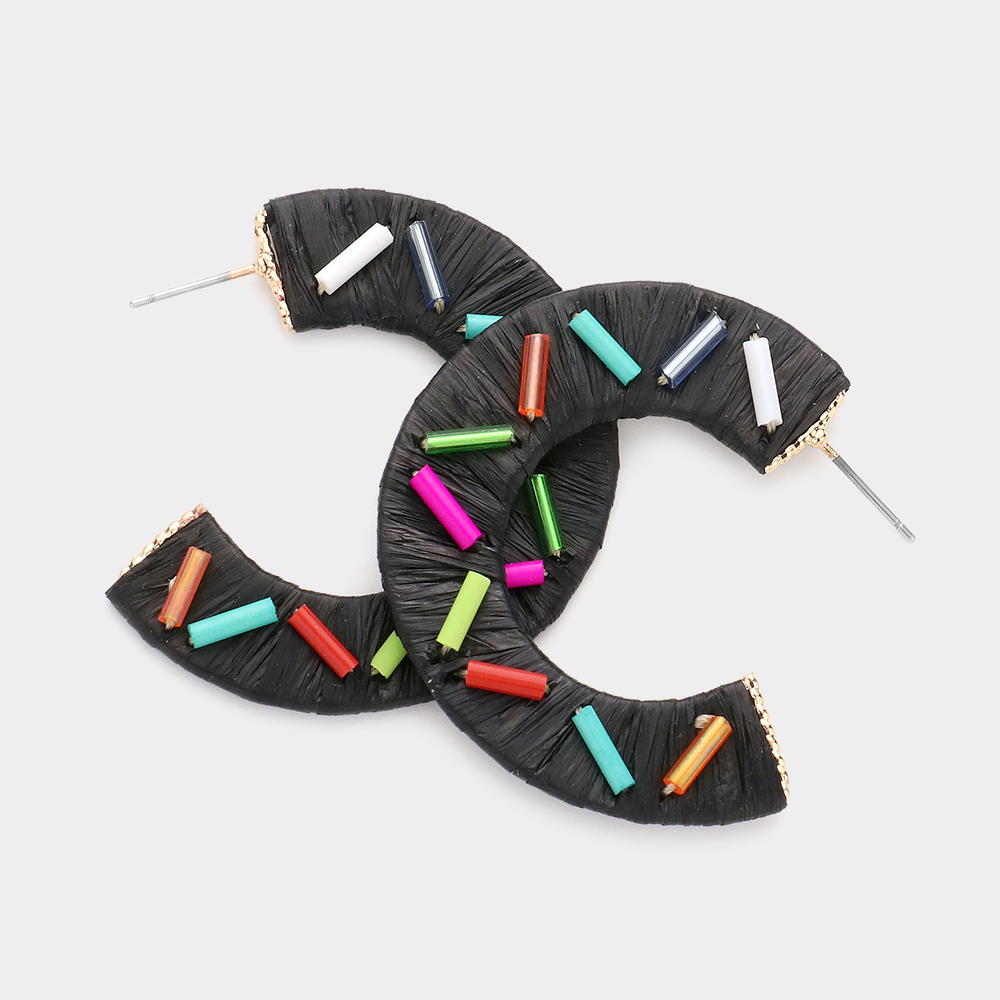 Cylinder Bead Embellished Raffia Hoop Earrings