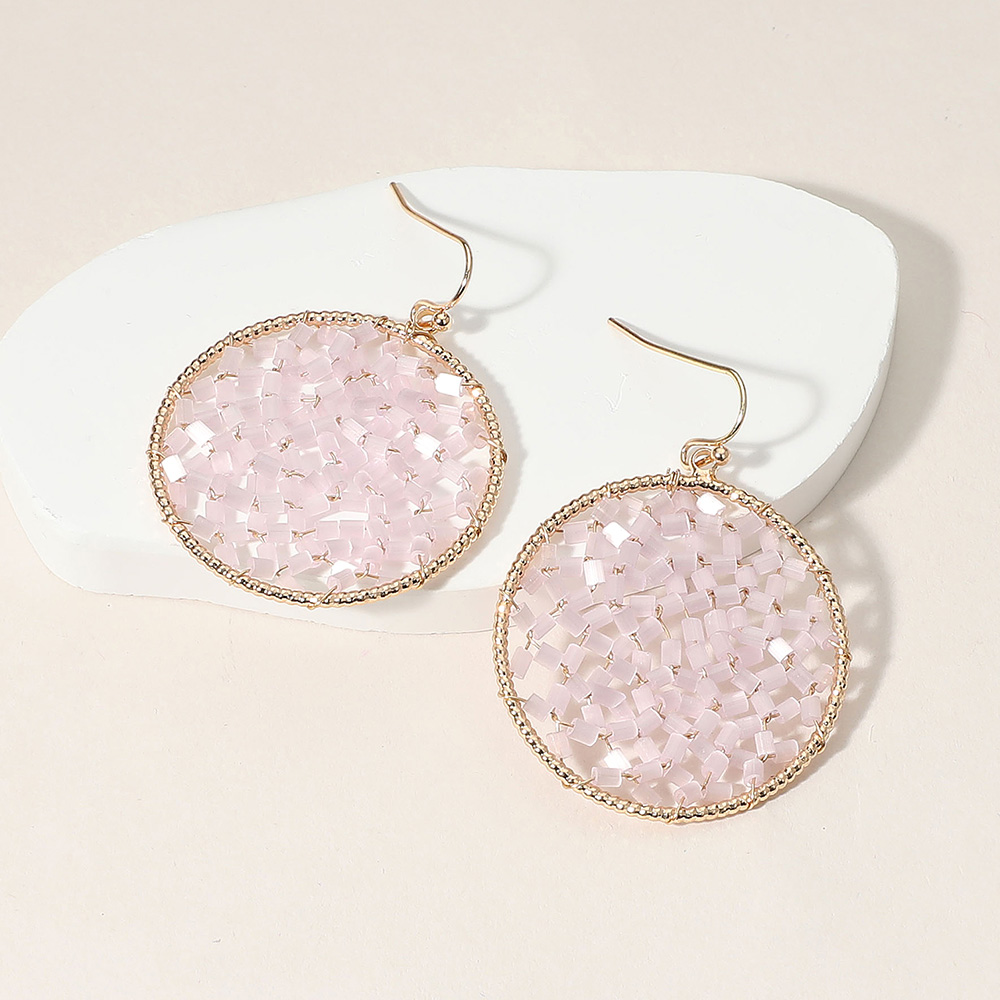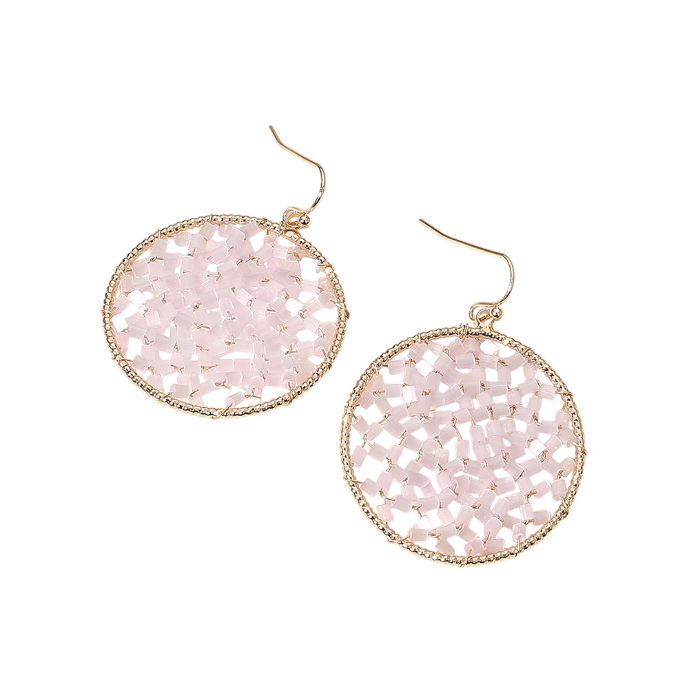 Cylinder Beaded Disc Dangle Earrings