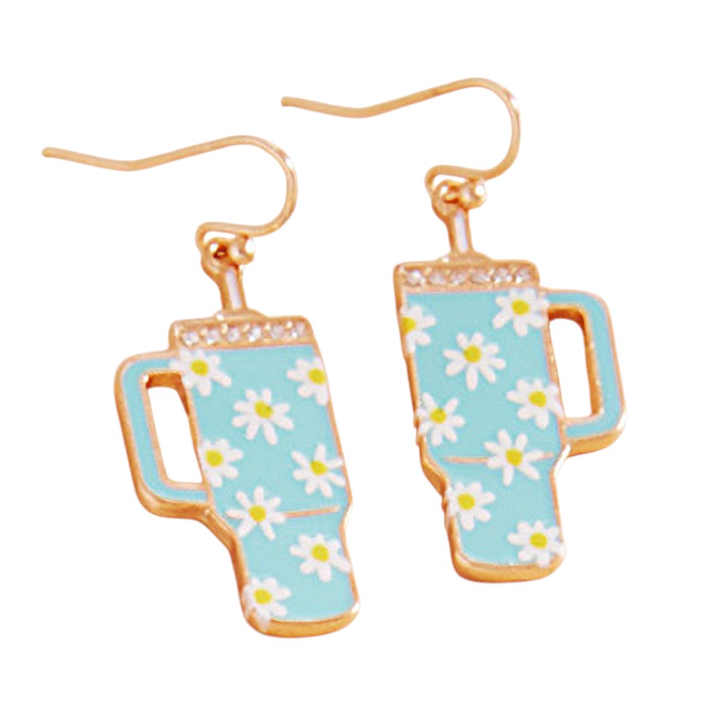 Details • Size : 0.6" X 1.6" • Fish Hook Back • Playful mug-shaped earrings featuring smiley faces, daisies, and rainbow motifs, topped with sparkling rhinestone accents. A cheerful and quirky accessory designed to add positivity and fun to your casual or festive outfits. • Lead and Nickel Compliant • Hypoallergenic