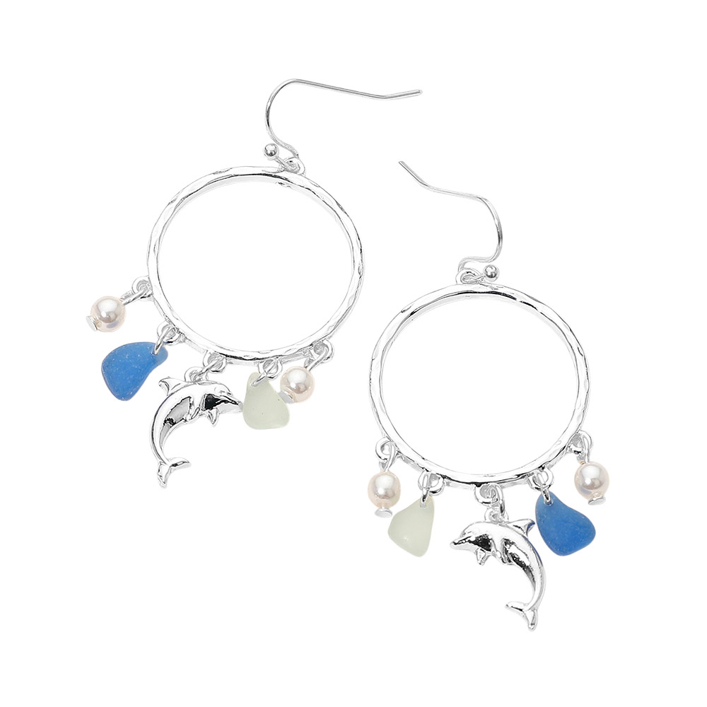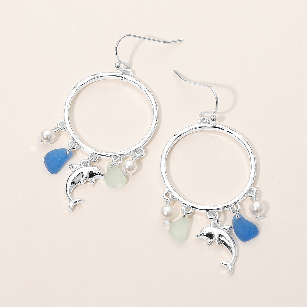 Dolphin Sea Glass Charm Drop Open Ring Dangle Earrings Dolphin Sea Glass Charm Drop Open Ring Dangle Earrings