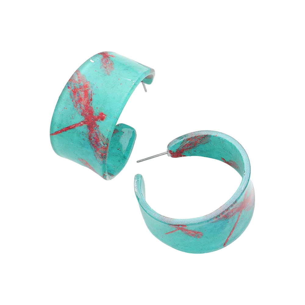 Dragonfly Printed Acrylic Hoop Earrings