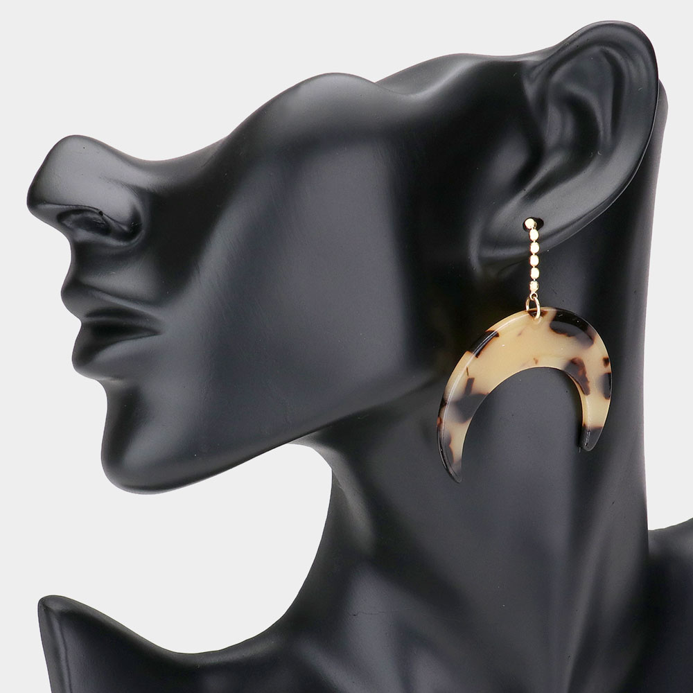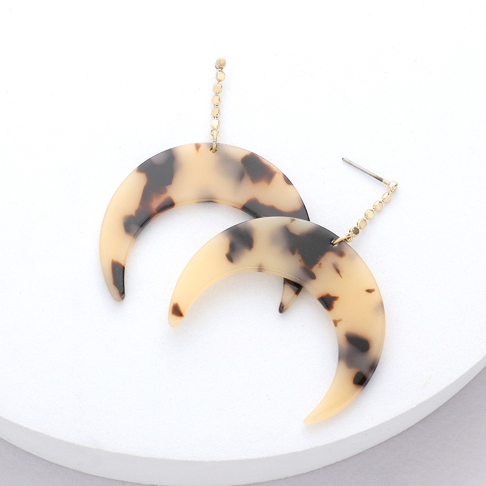 Details • Size : 1.75" X 2.25" • Post Back • Show off your style with crescent-shaped drop earrings featuring a bold tortoise shell pattern. These eye-catching accessories add an artistic, trendy touch to casual or elevated looks. • Lead and Nickel Compliant