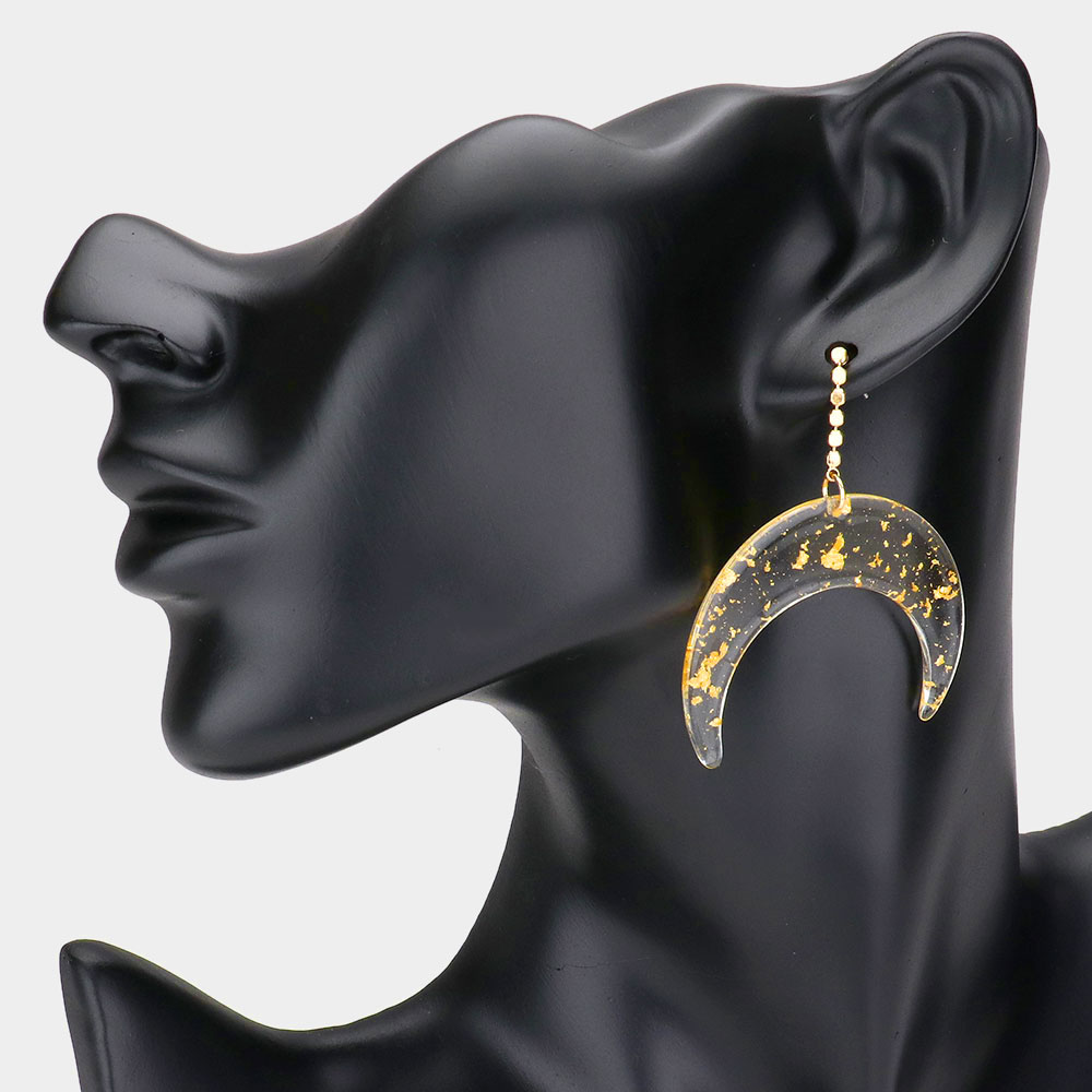 Dropped Celluloid Acetate Double Horn Dangle Earrings