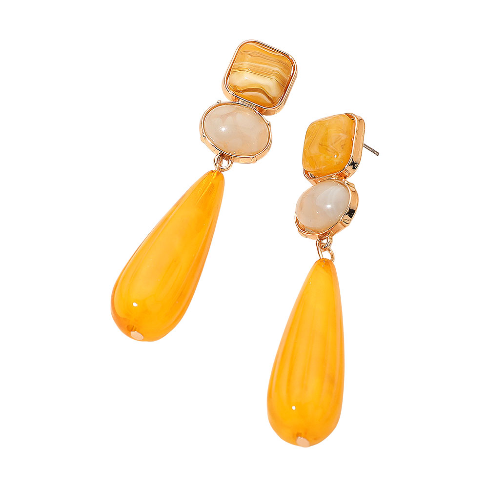 Details • Size : 0.6" X 3" • Post Back • These elegant teardrop dangle earrings feature smooth, marbled drops paired with chic geometric accents. Perfect for adding refined sophistication to both casual and formal looks, they bring a graceful balance of modern style and timeless feminine charm. • Lead and Nickel Compliant