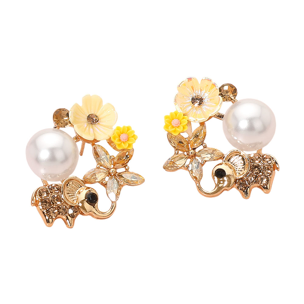 • Whimsical stud earrings featuring adorable elephant charms adorned with crystals, delicate floral details, and luminous pearl accents. A charming accessory that blends playful design with elegant sparkle, perfect for adding personality to casual or dressy looks.