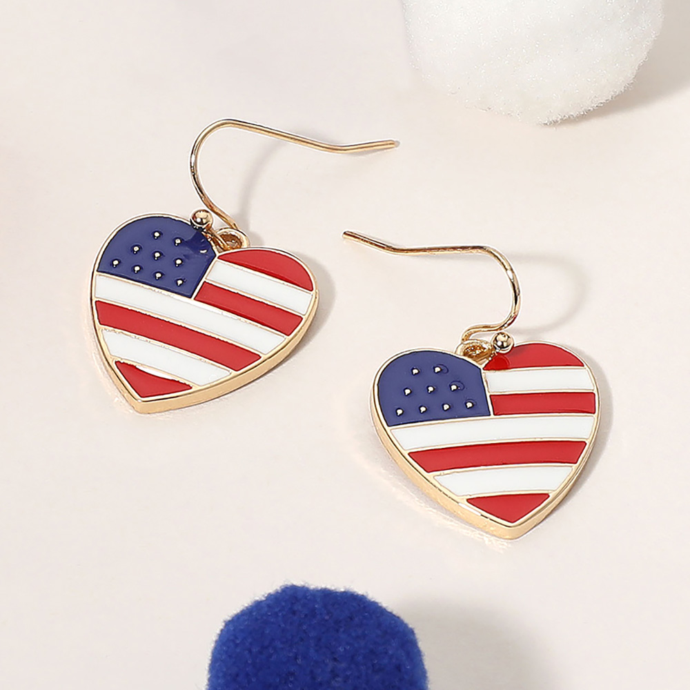 • Heart-shaped drop earrings with a patriotic theme, ideal for showing national pride. Lightweight and stylish, perfect for holidays, events, or everyday festive wear.
