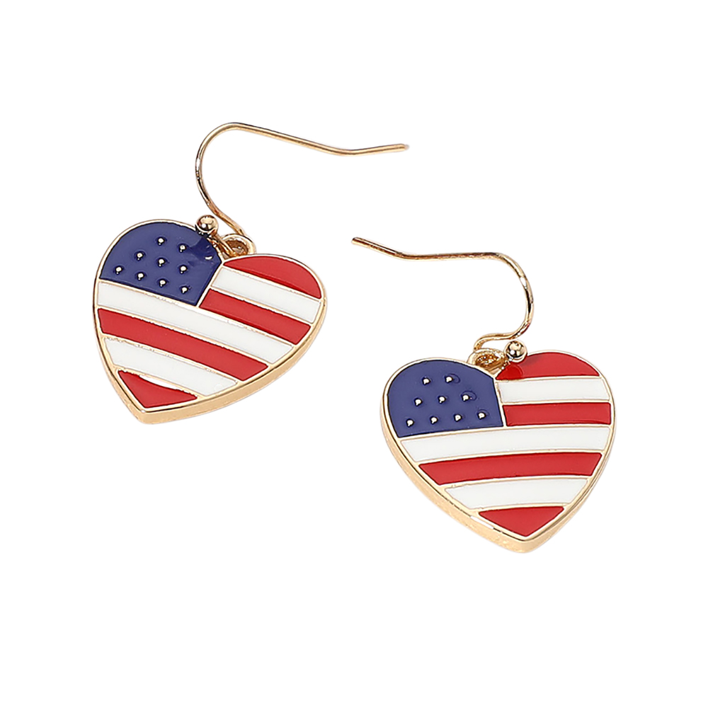 Enamel American USA Flag Heart Dangle Earrings