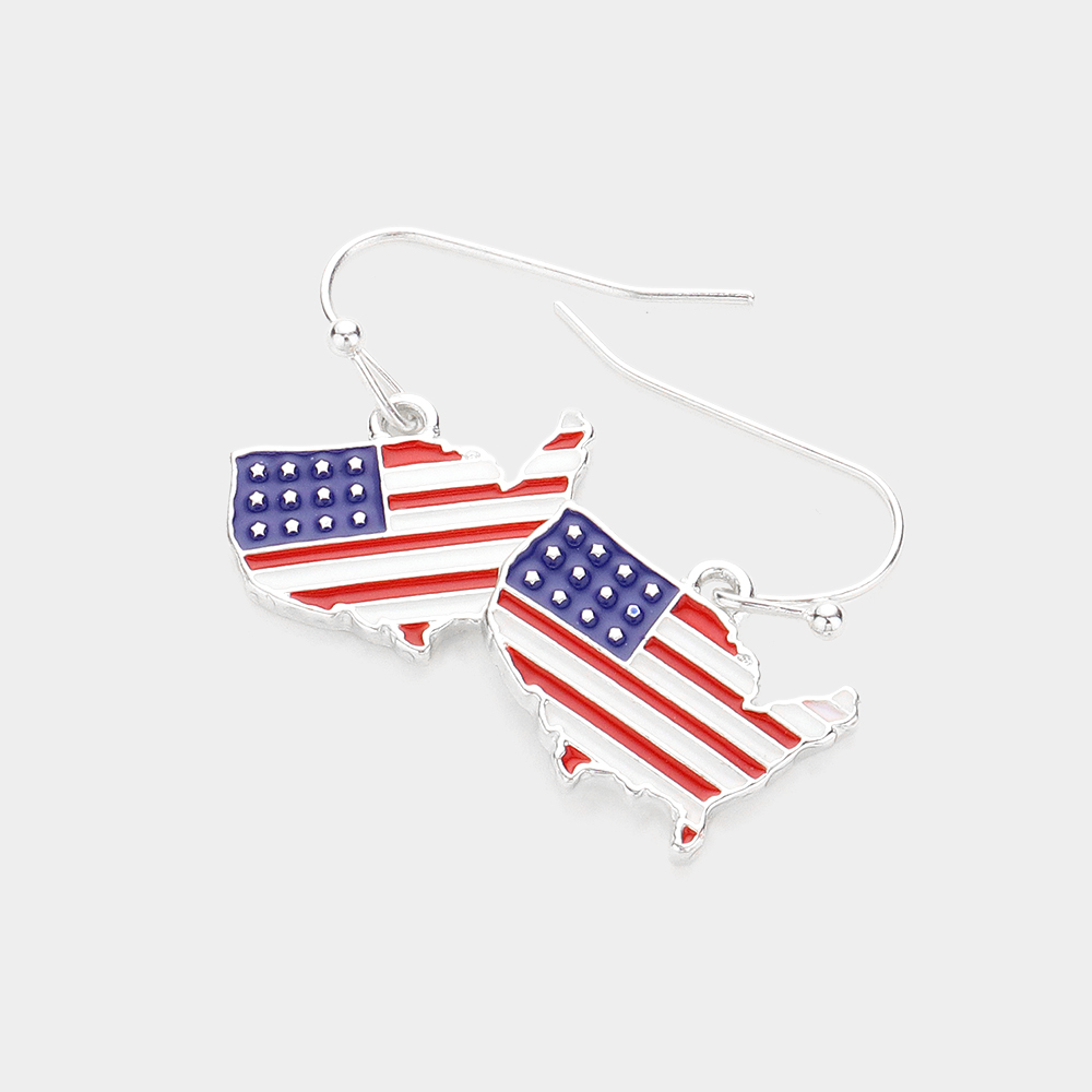 Glittered Resin American USA Flag Gift Box Dangle Earrings