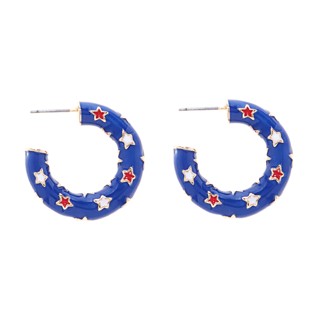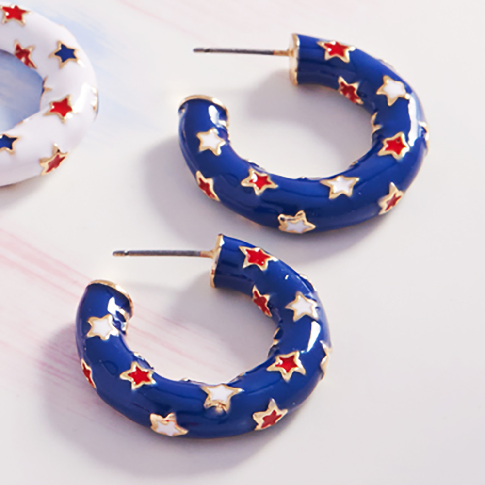Enamel American USA Flag Pattern Hoop Earrings