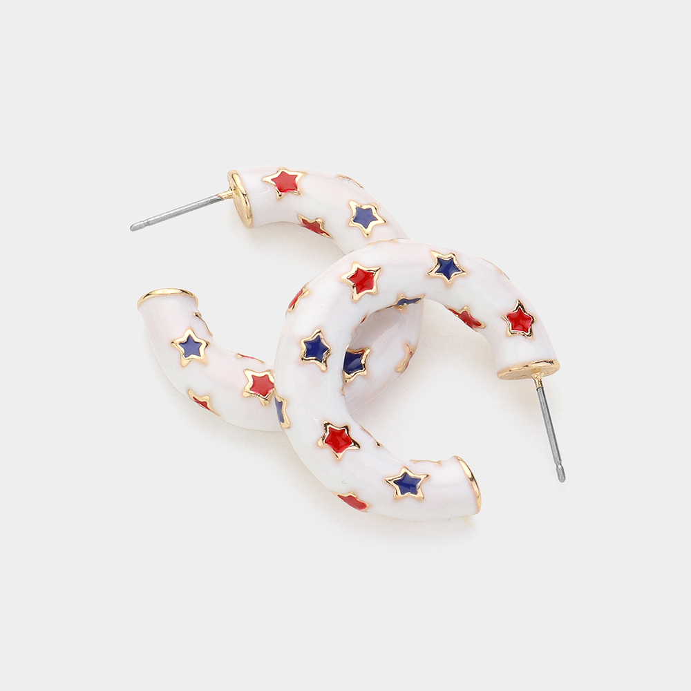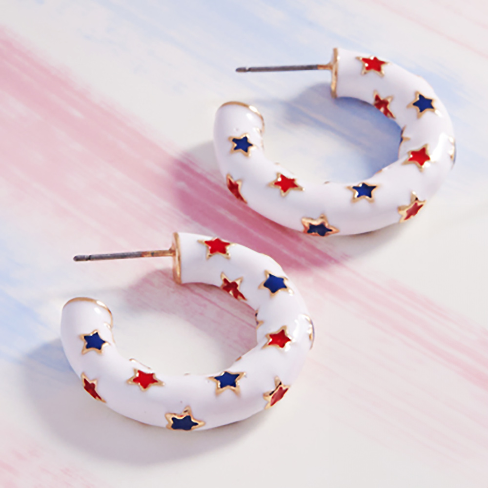 White Gold Dipped Sterling Silver Post Patriotic Heart Earrings