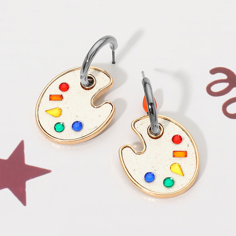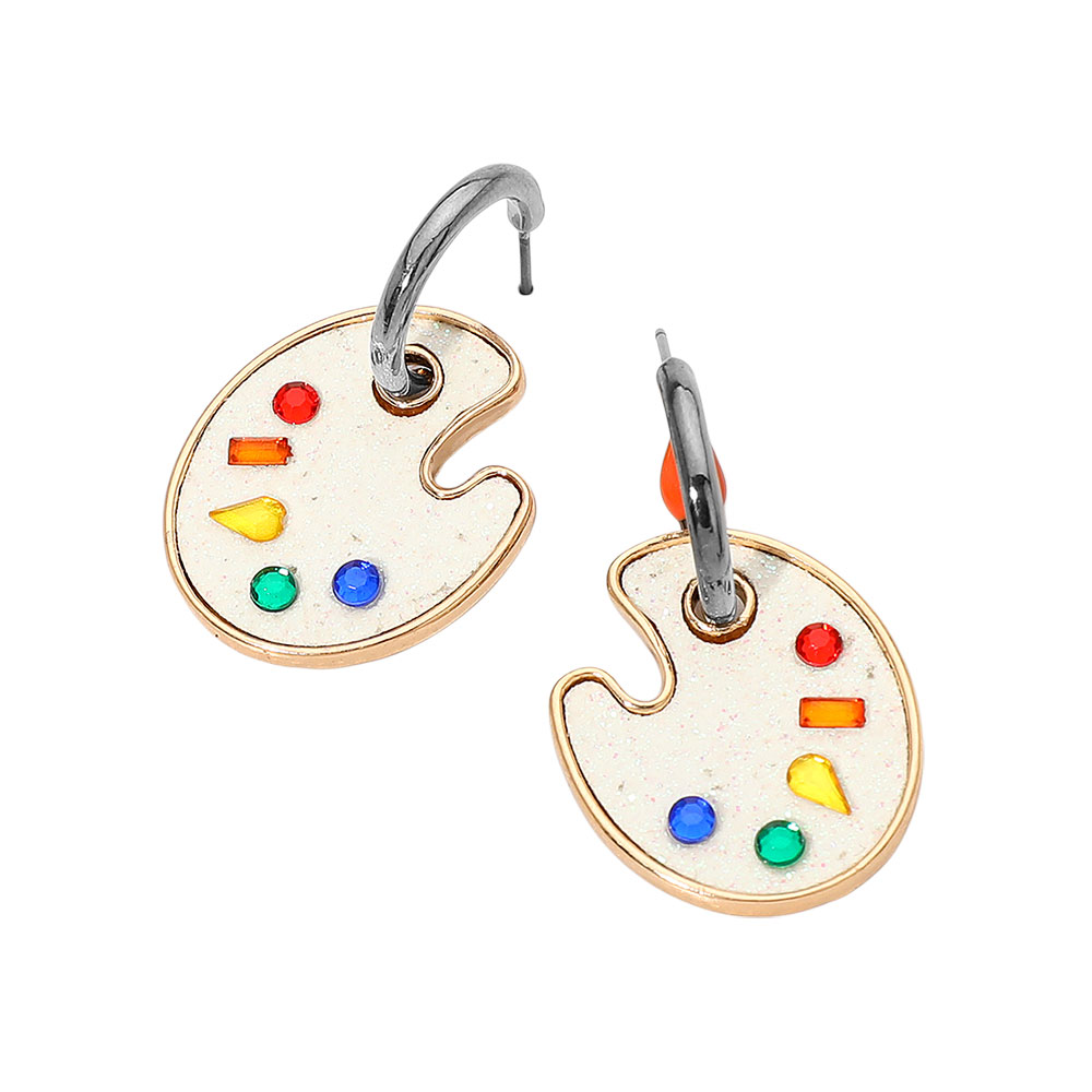 Details • Size : 0.8" X 1.4" • Post Back • Whimsical earrings inspired by painter palettes, featuring playful decorative accents for a creative statement look. Ideal for art lovers, teachers, students, gifting, themed outfits, or adding a fun artistic touch to everyday style. • Lead and Nickel Compliant