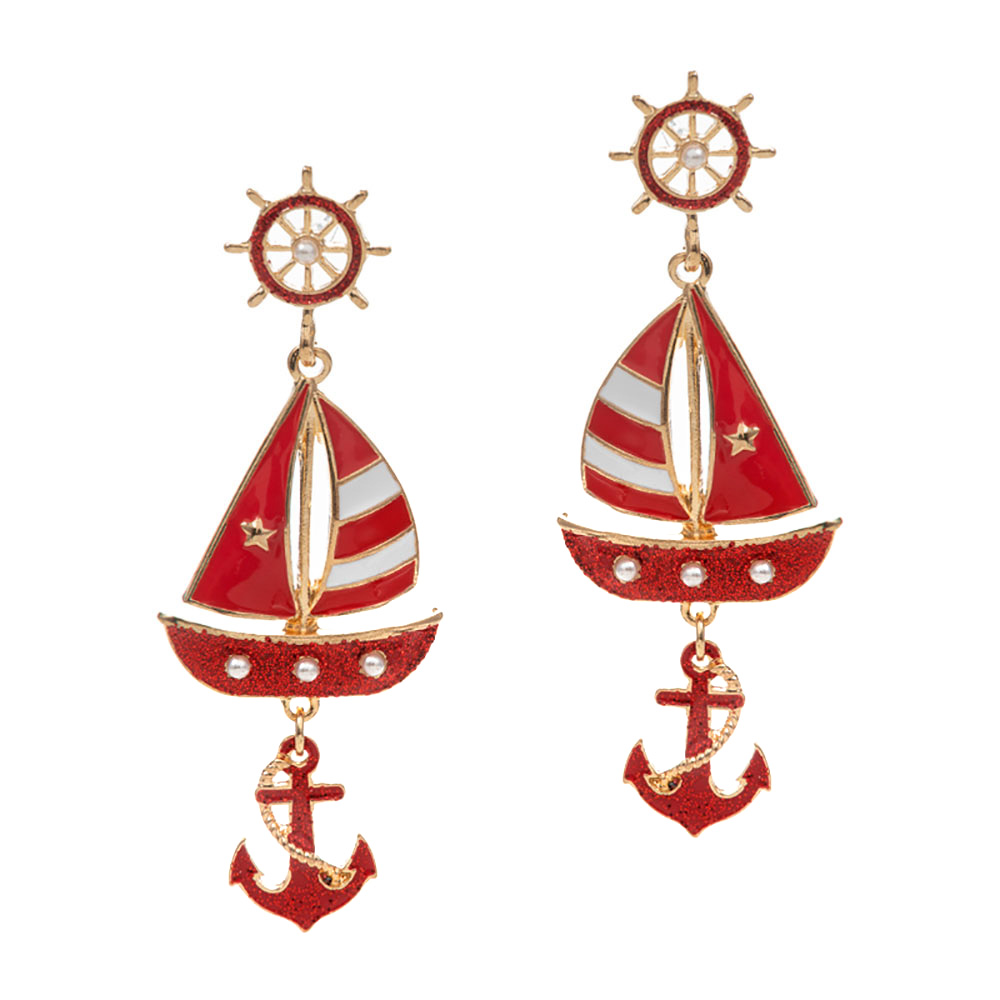 Crystal Rhinestone Paved Anchor Stud Earrings