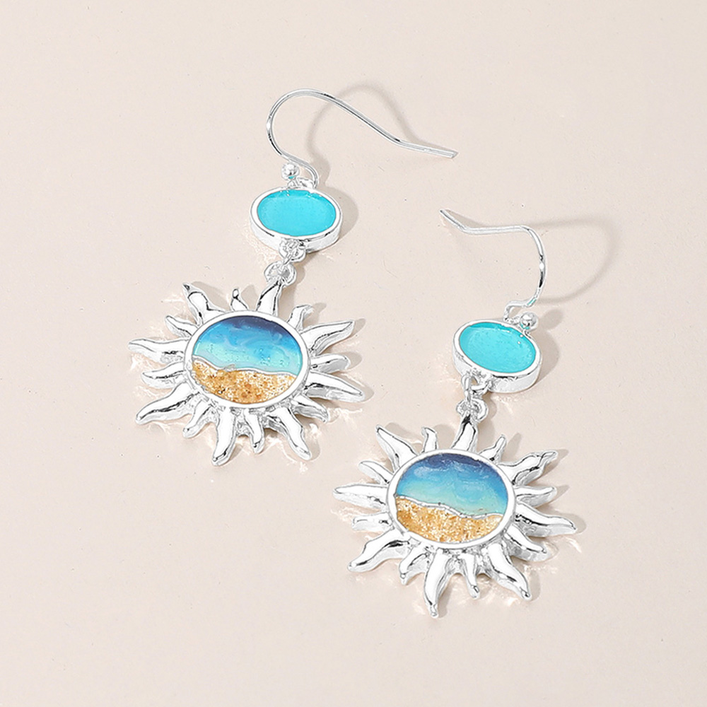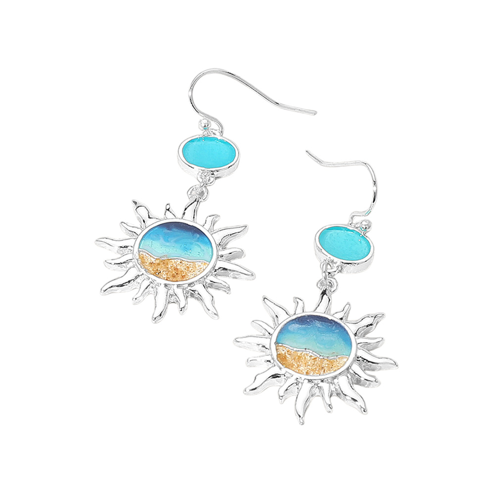 Enamel Burning Sun Sea Glass Link Dangle Earrings