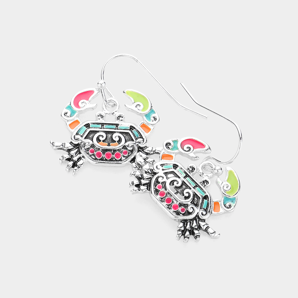 Details • Size : 0.8" X 1.2" • Fish Hook Back • These crab earrings showcase a lively mosaic-inspired pattern that enhances their whimsical sea-themed design. Perfect for ocean lovers and fans of artistic accessories, they bring a fun, expressive touch to everyday outfits and add coastal charm to any jewelry collection. • Lead and Nickel Compliant