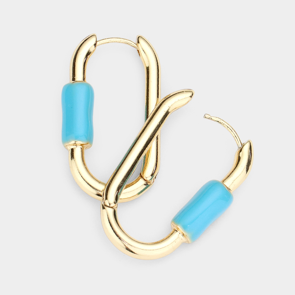 Enamel Detailed Metal Oval Huggie Earrings
