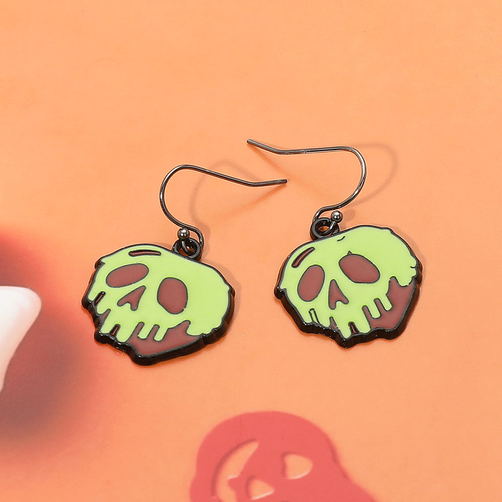 Details • Size : 0.8" X 1.3" • Fish Hook Back • Edgy skull-shaped dangle earrings with a dripping design, perfect for Halloween outfits or spooky season vibes. A bold and fun accessory for festive flair. • Lead and Nickel Compliant