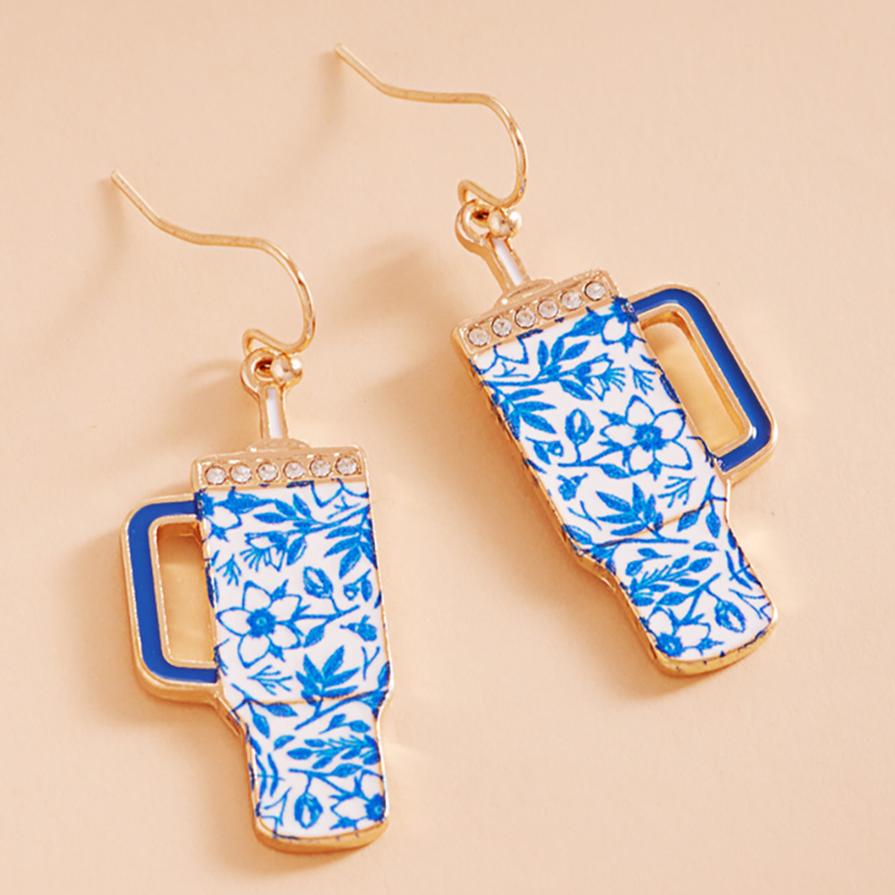 Details • Size : 0.6" X 1.6" • Fish Hook Back • Unique drop earrings designed as floral mugs with intricate patterns and rhinestone accents. A playful and stylish accessory, perfect for adding charm and personality to casual outfits or gifting to beverage lovers. • Lead and Nickel Compliant • Hypoallergenic