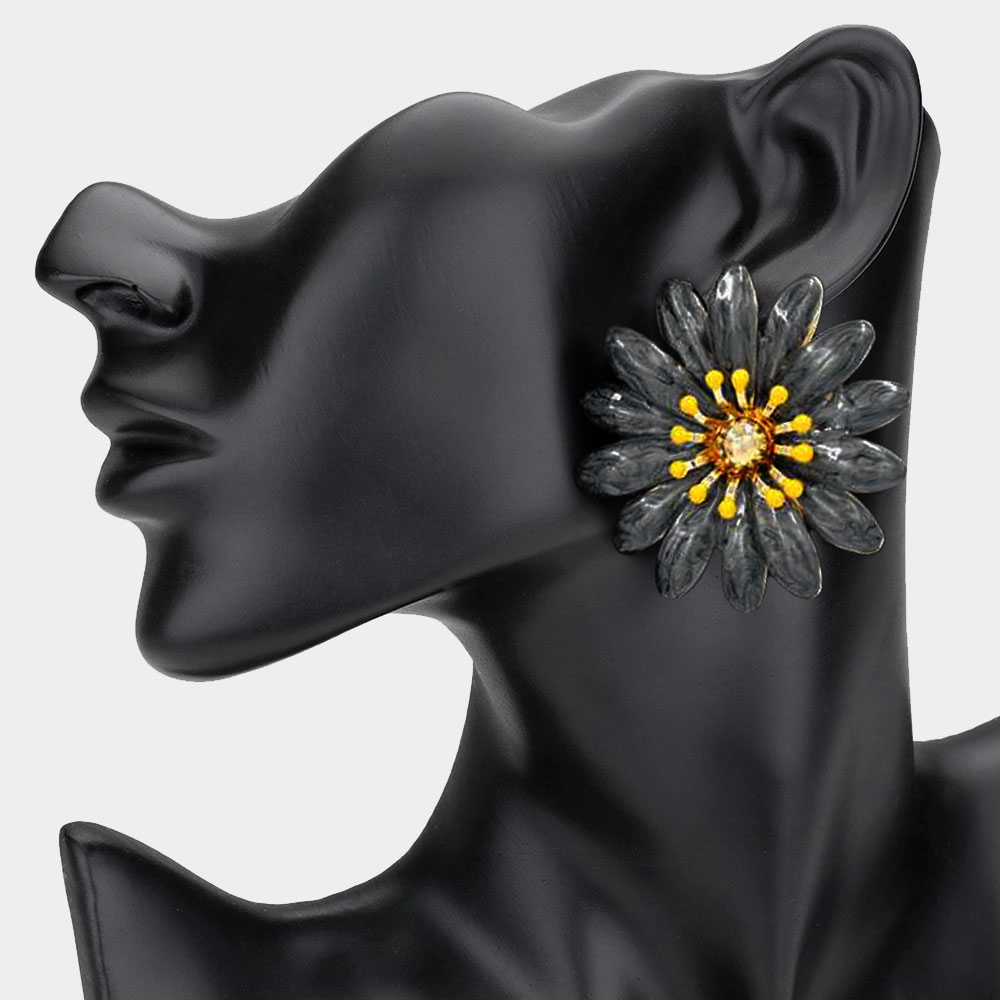 • Eye-catching statement earrings featuring a large floral design with layered petals and a vibrant center. Perfect for adding a bold, artistic flair to special occasions, parties, or standout everyday looks.