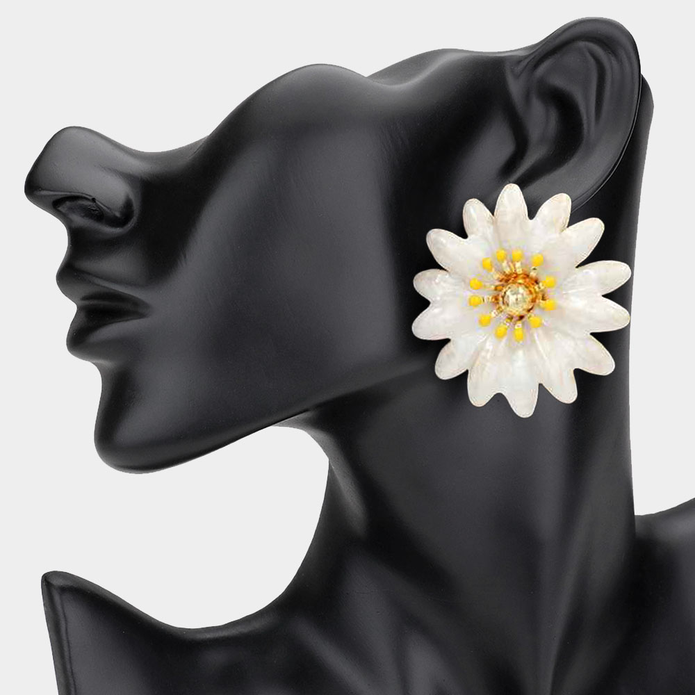 • Eye-catching statement earrings featuring a large floral design with layered petals and a vibrant center. Perfect for adding a bold, artistic flair to special occasions, parties, or standout everyday looks.