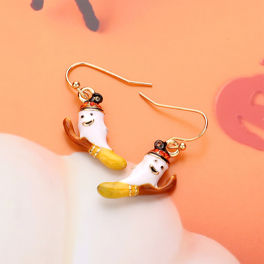Polymer Clay Bat Pumpkin Link Dangle Earrings