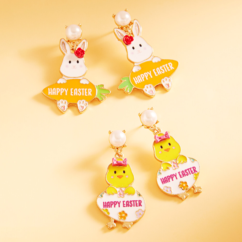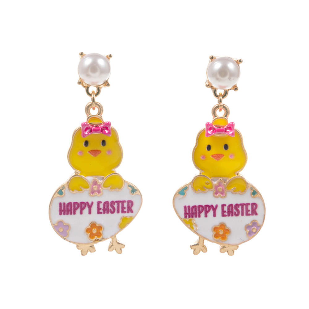 Enamel HAPPY EASTER Message Chick Egg Dangle Earrings
