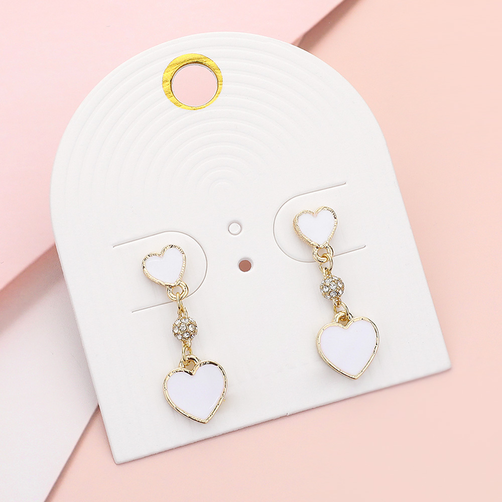 Enamel Heart Mini Shamballa Ball Link Dropdown Dangle Earrings