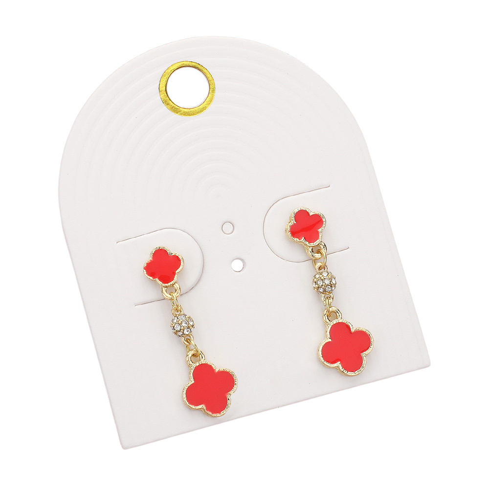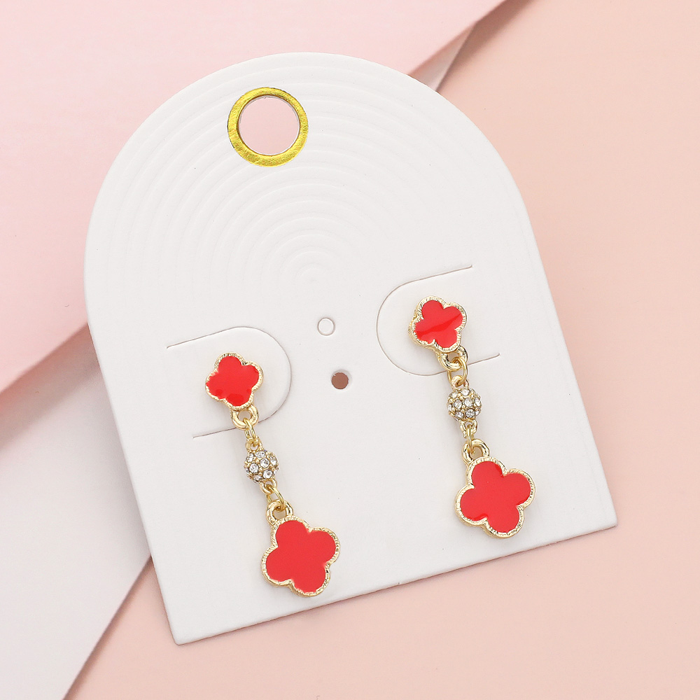 Enamel Quatrefoil Mini Shamballa Ball Link Dropdown Dangle Earrings