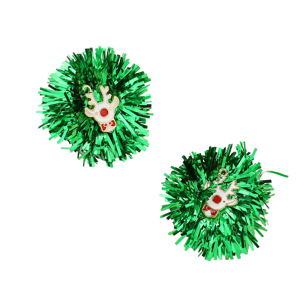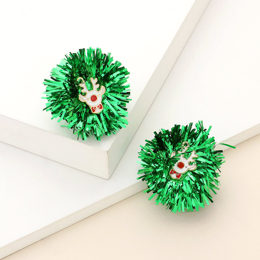 Details • Size : 2" X 2" • Post Back • Add a playful touch to your festive look with these tinsel pom earrings featuring charming reindeer accents. Lightweight and full of seasonal cheer, they’re the perfect accessory to brighten any holiday outfit and spread joy during Christmas celebrations. • Lead and Nickel Compliant