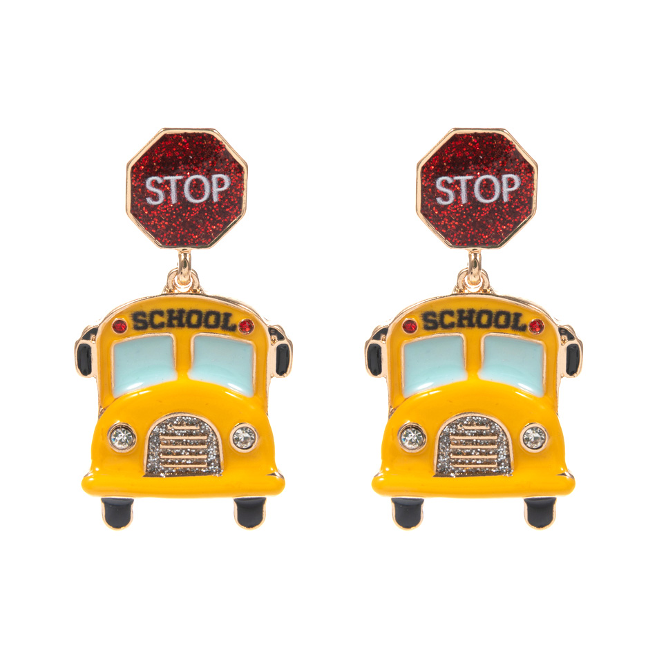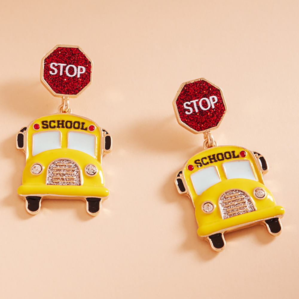 Stone Seed Bead Embellished School Bus Dangle Earrings