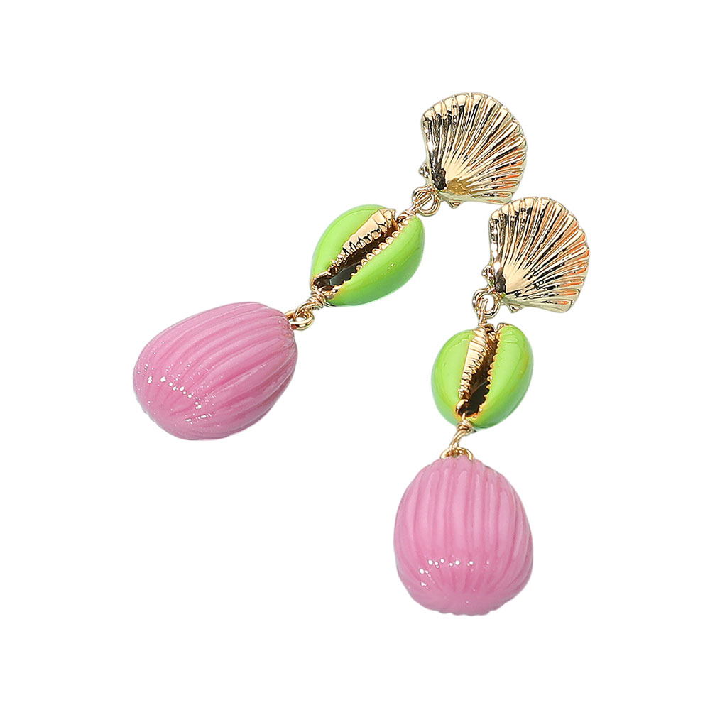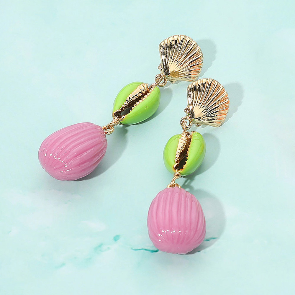Details • Size : 0.7" X 2.6" • Post Back • Bring seaside charm to your look with these shell drop earrings, designed with a playful blend of textures and shapes. Perfect for vacations, summer outfits, or adding a beach-inspired statement to everyday style. • Lead and Nickel Compliant