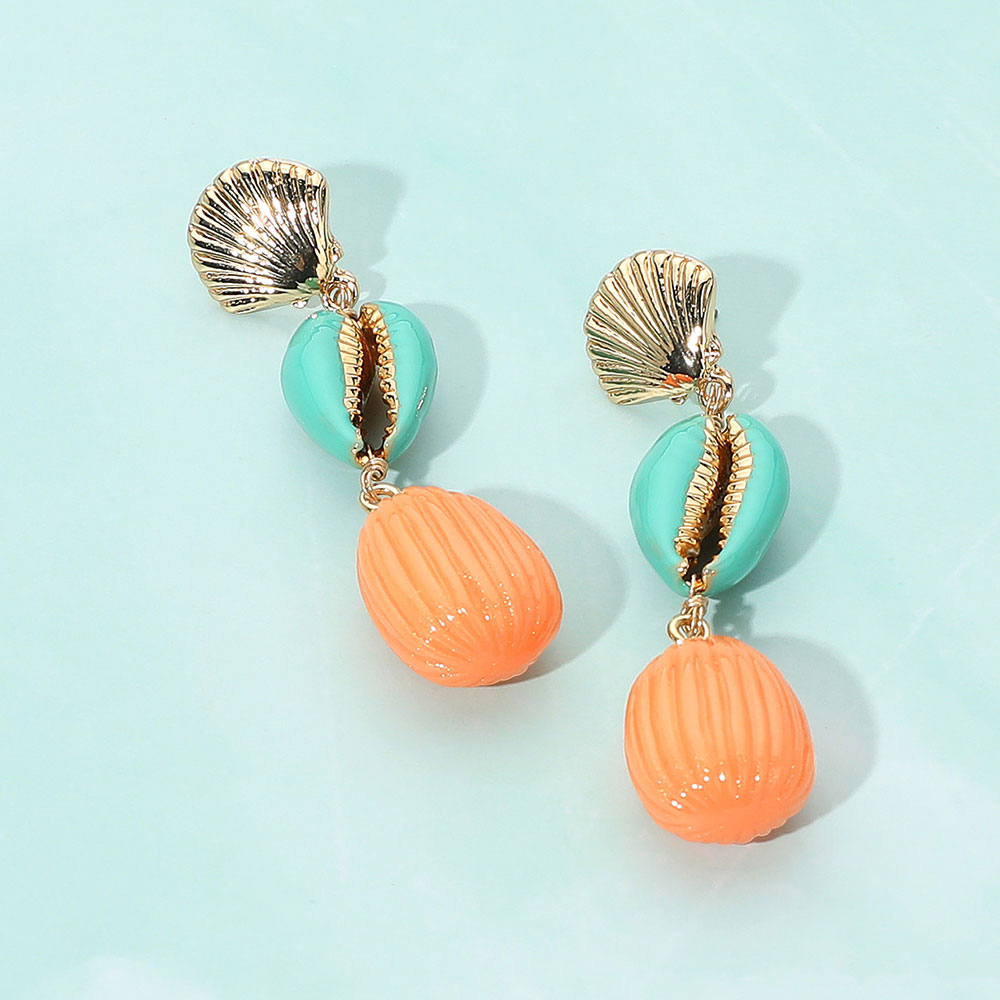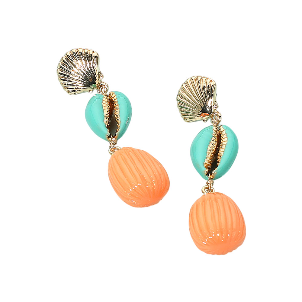 Details • Size : 0.7" X 2.6" • Post Back • Bring seaside charm to your look with these shell drop earrings, designed with a playful blend of textures and shapes. Perfect for vacations, summer outfits, or adding a beach-inspired statement to everyday style. • Lead and Nickel Compliant