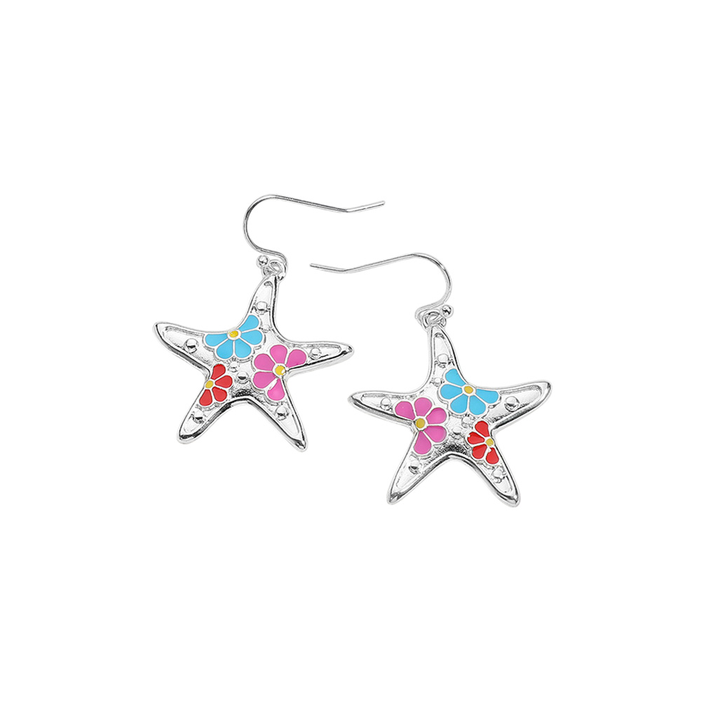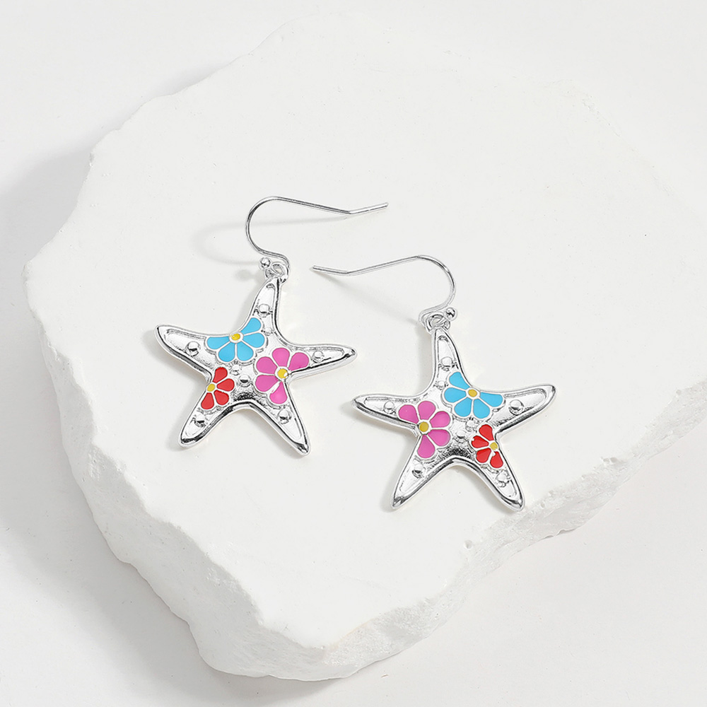 Stone Paved Abalone Sea Glass Dolphin Dangle Earrings