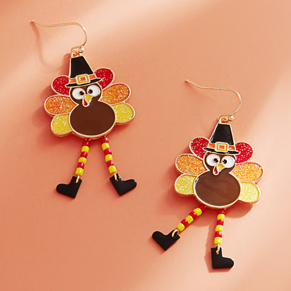 • Celebrate the season with fun Thanksgiving dangle earrings featuring a cheerful turkey design and playful beaded legs. Perfect for holiday parties, themed events, or gifting to anyone who loves festive accessories.