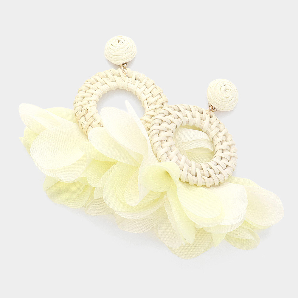 Fabric Petal Raffia Round Dangle Earrings