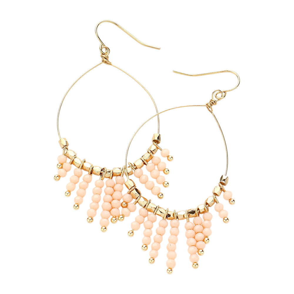 Faceted Bead Fringe Open Wire Teardrop Dangle Earrings