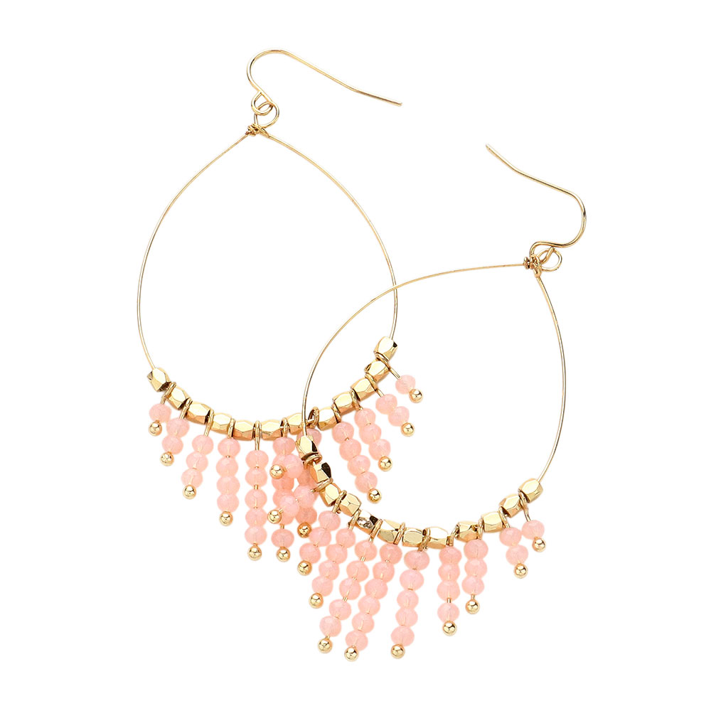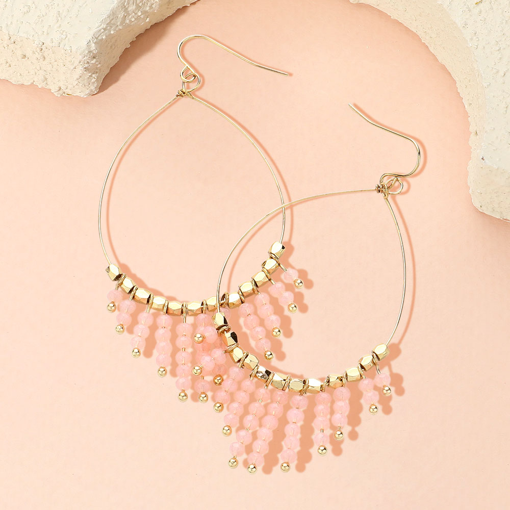 Faceted Bead Fringe Open Wire Teardrop Dangle Earrings