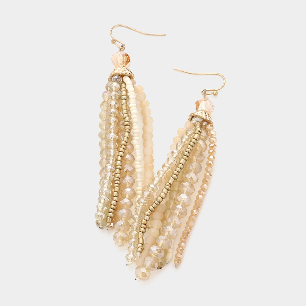 7PCS - Faceted Beads Thread Wrapped Ball Beaded Metal Leaf Tassel Charm Stretch Multi Layered Bracelets