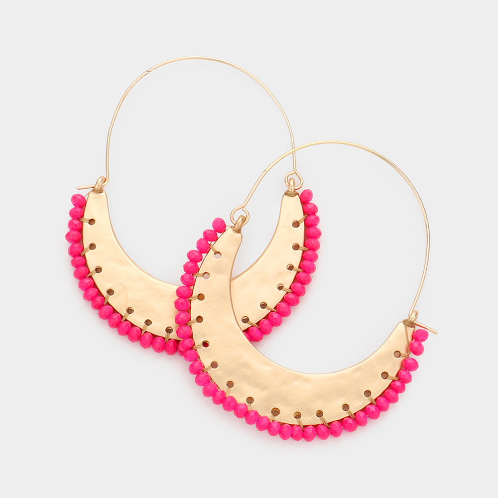 Faceted Bead Trimmed Metal Link Dangle Earrings