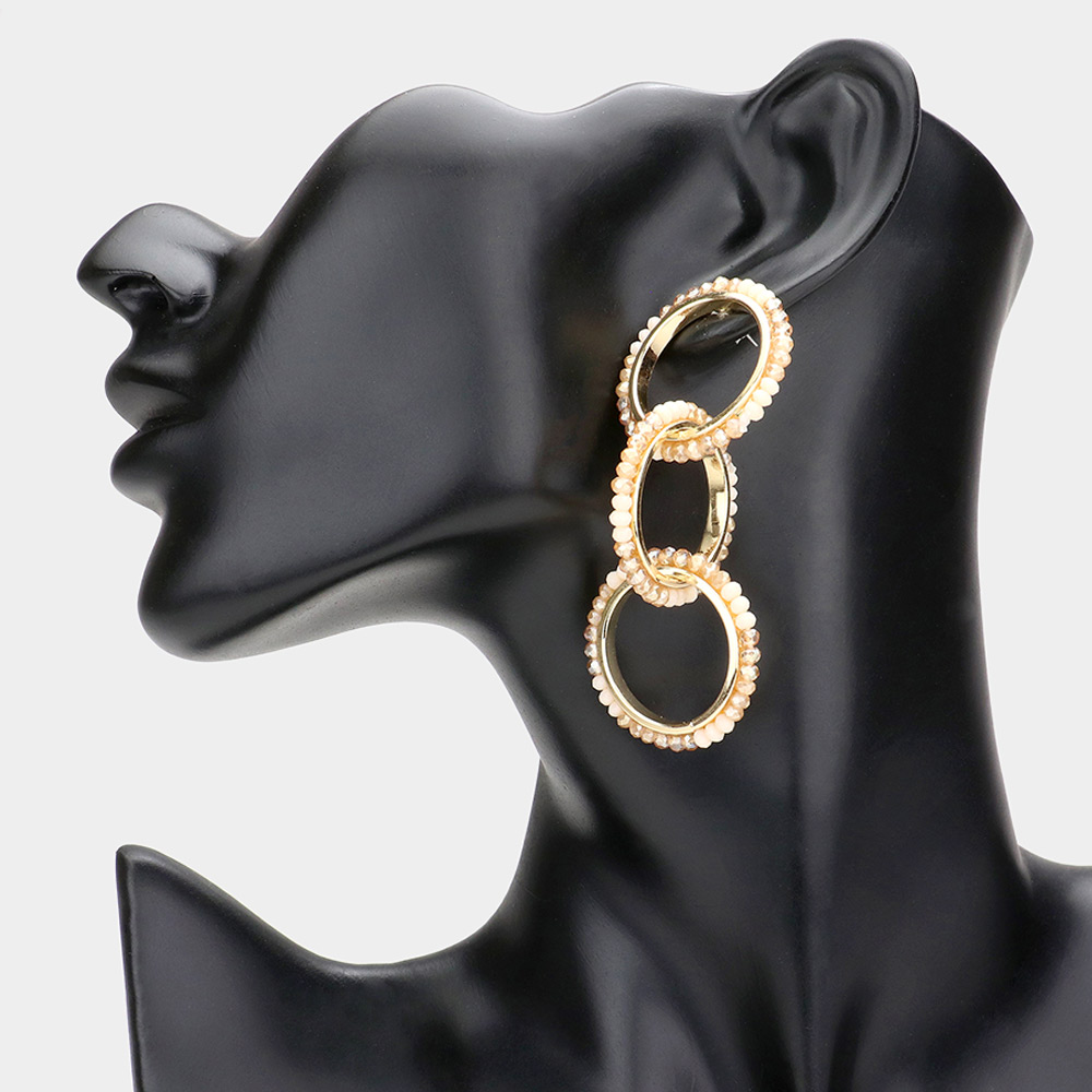 Faceted Bead Trimmed Triple Open Circle Link Dangle Earrings
