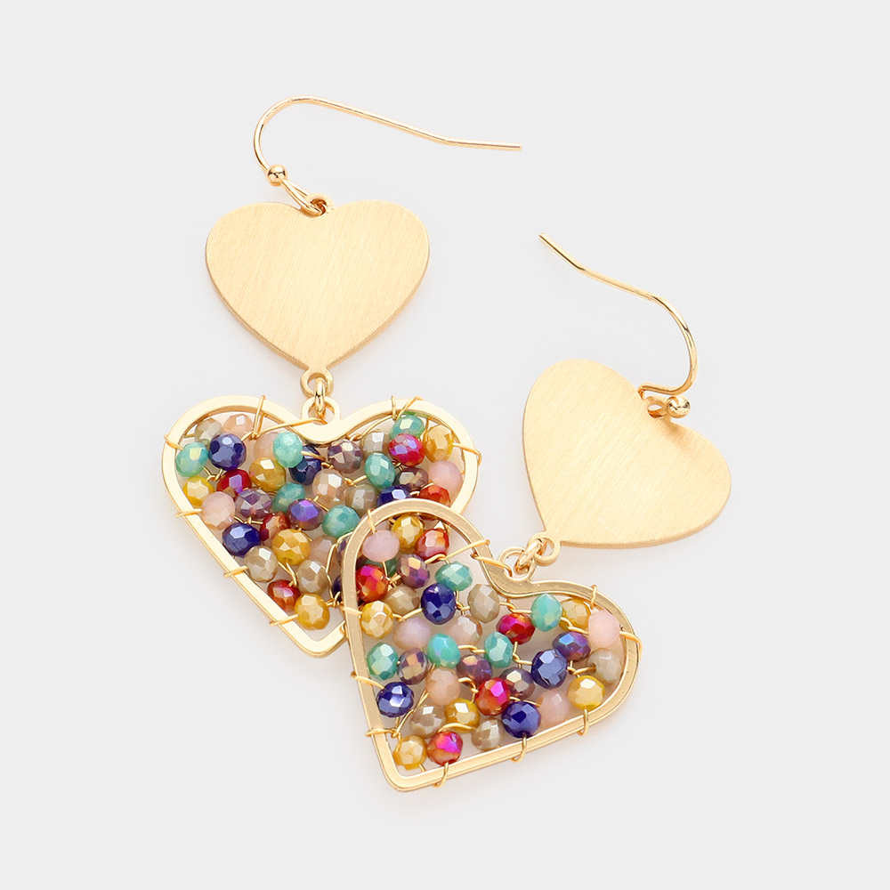 Faceted Bead Wrapped Heart Link Dangle Earrings
