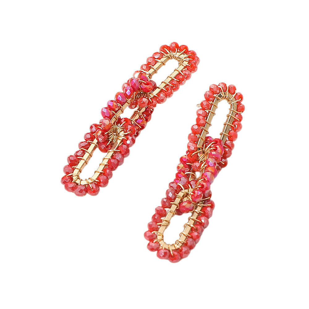 • Add a chic edge to your look with geometric beaded drop earrings designed with linked shapes and intricate detailing. Perfect for fashion-forward outfits, parties, or casual wear, these earrings bring a striking statement to any jewelry collection.