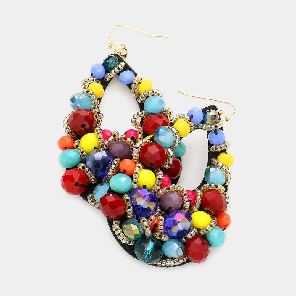 Faceted Beaded Cluster Teardrop Dangle Earrings