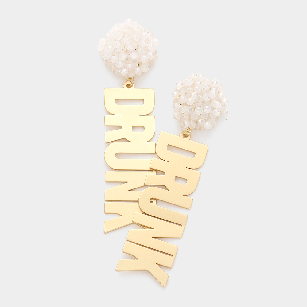 Faceted Beaded Dome Metal Drunk Message Link Dangle Earrings