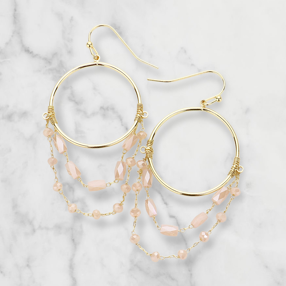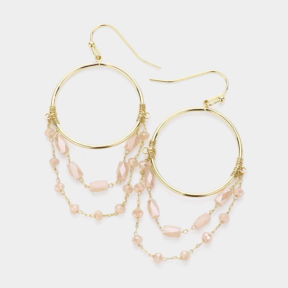 Faceted Beaded Loop Drop Circle Dangle Earrings