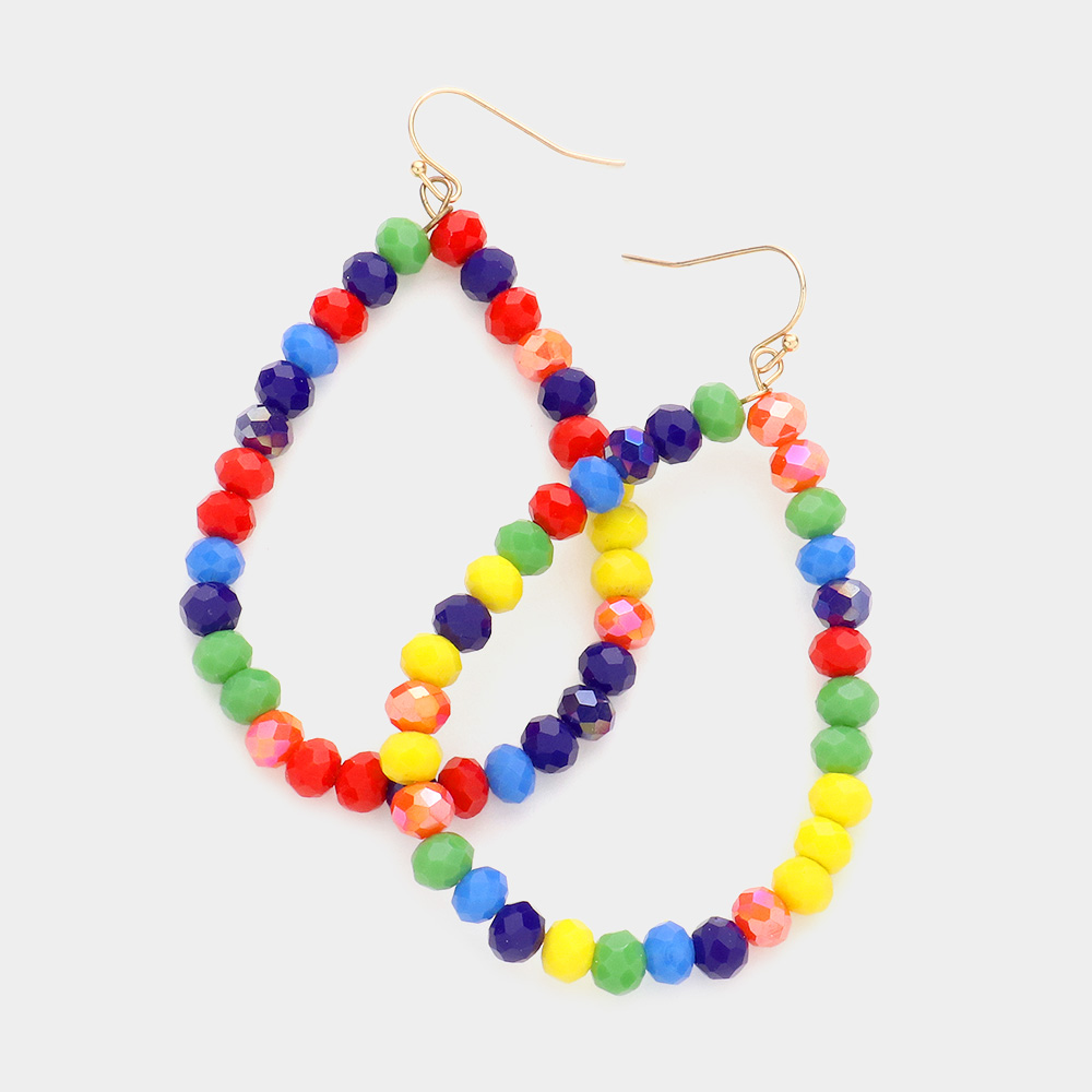 Faceted Beaded Open Teardrop Dangle Earrings