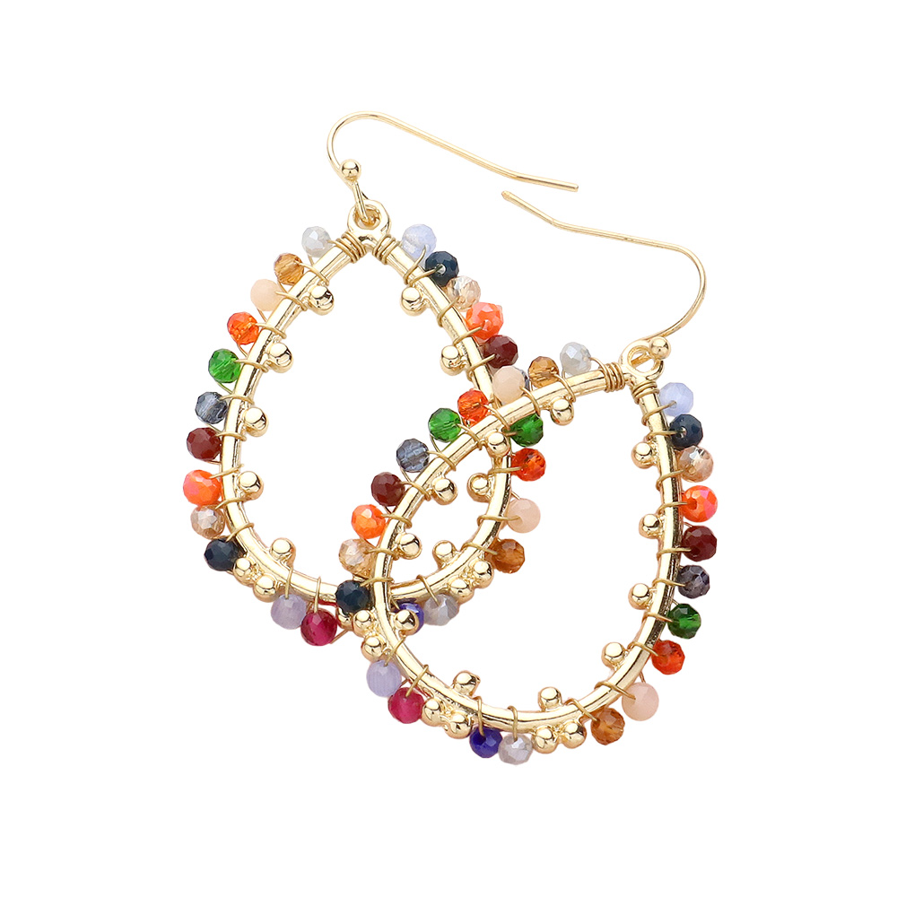 Faceted Beaded Open Teardrop Dangle Earrings