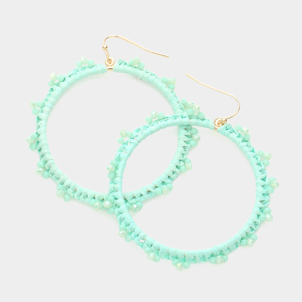 Faceted Beaded Pointed Raffia Wrapped Open Circle Dangle Earrings
