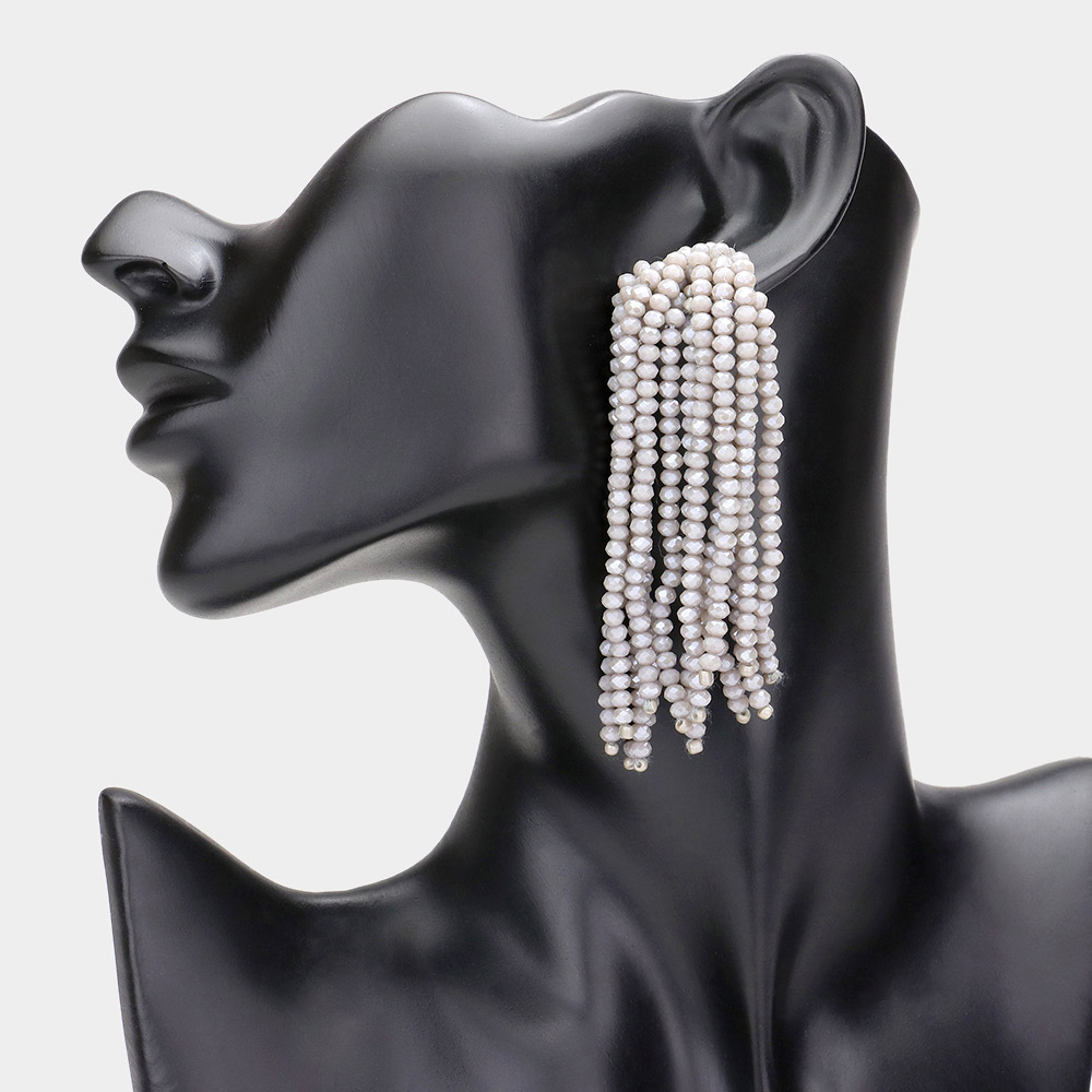 Faceted Beaded Tassel Dangle Earrings