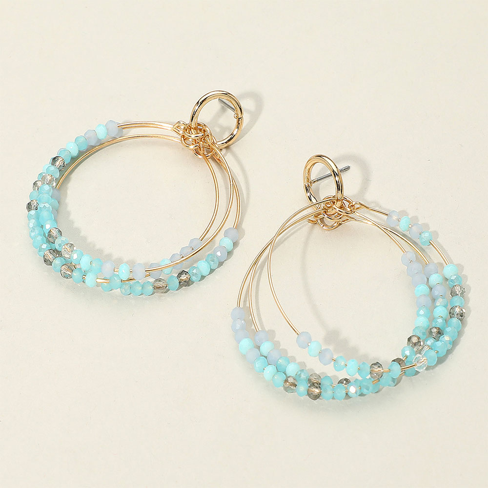 Faceted Beaded Triple Open Circle Layered Dangle Earrings